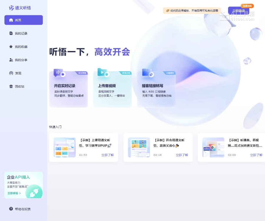 通义听悟是阿里云推出的工作学习AI助手,依托通义千问语言模型、音视频AI模型能力,为用户提供实时语音转写、音视频文件转写、实时翻译、智能提炼关键信息等多种功能,带来音频和视频内容记录和阅读的全新体验。工具支持多种语言,支持自动区分发言人,能提取关键词、待办事项等,帮助用户高效管理知识和信息。在会议、学习和访谈等场景中,通义听悟都能让用户轻松记录、整理和回顾重要内容,提升工作和学习效率。