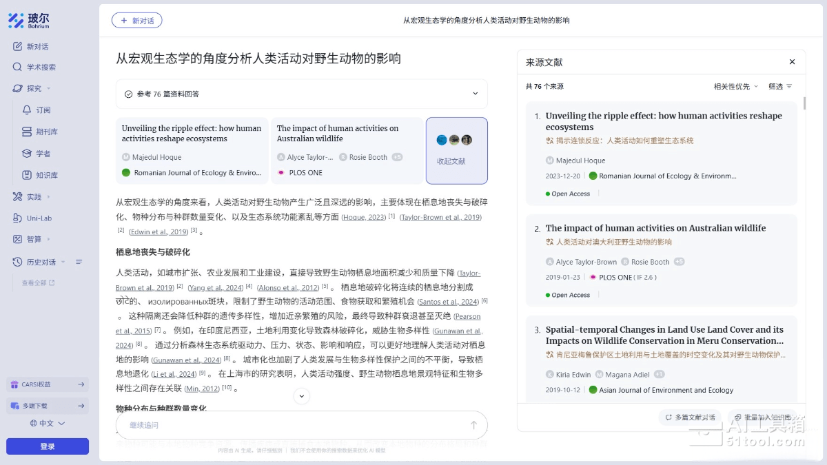 • 文献调研:通过科学导航的AI学术搜索功能,快速定位与研究方向相关的文献,节省文献检索时间。