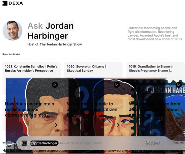 Dexa AI 是AI播客搜索工具,基于先进的索引技术,为用户在众多播客中快速找到所需内容。用户可向特定主播提问或搜索跨节目话题,结果以 AI 总结形式呈现,并提供时间戳链接。Dexa AI 致力于提升播客内容的可访问性。