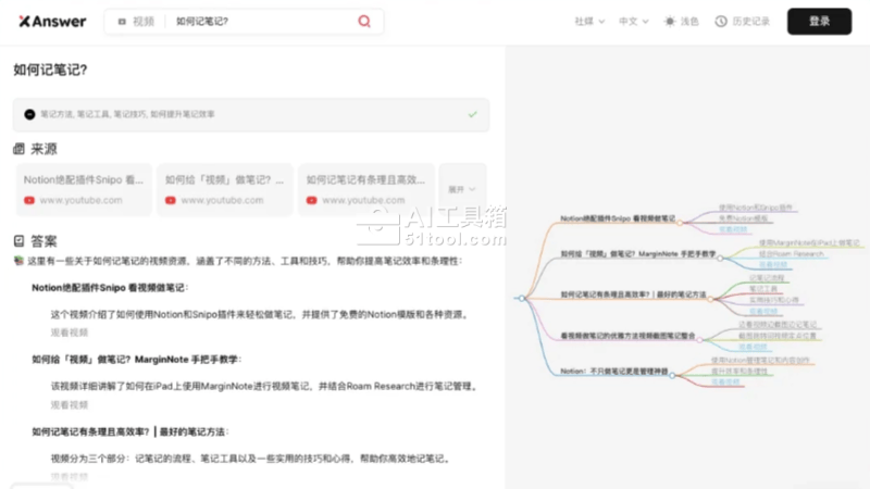 - 思维导图生成:XAnswer能够自动生成思维导图,帮助用户以视觉化的方式组织信息。