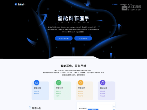 - 访问途径:主要推荐通过PC端的Chrome或Edge浏览器访问其官方网站 https://effidit.qq.com/ 进行在线体验。同时,也提供Windows客户端可供下载,并可通过微信小程序在移动端使用。