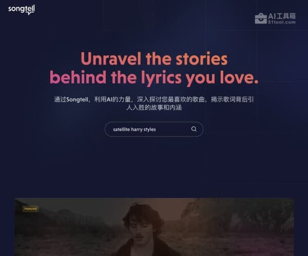 Songtell是一个AI驱动的音乐百科搜索引擎,通过人工智能技术深入分析歌词,揭示歌曲背后隐藏的含义和故事。用户可以通过搜索功能找到特定歌曲,并获取AI生成的见解和解释,从而加深对音乐的理解与欣赏。这个工具适合音乐爱好者、词曲创作者、教育工作者以及任何对歌词背后故事感兴趣的人使用。Songtell旨在提升音乐体验,帮助用户发现新的音乐,并提供更丰富的音乐知识。
