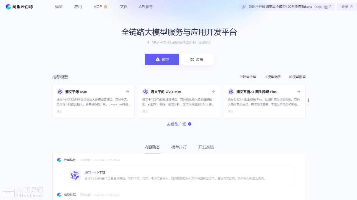 • MCP服务:连接智能,即点即用支持探索阿里云百炼全周期 MCP 服务。