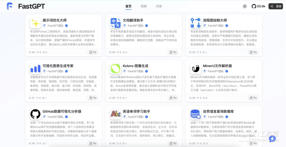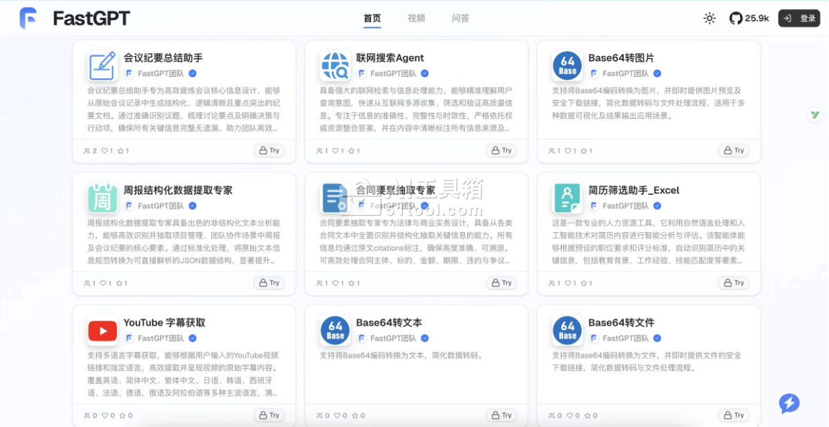 - 访问平台:访问FastGPT官网 fastgpt.cn ,注册并登录,进入工作后台。
