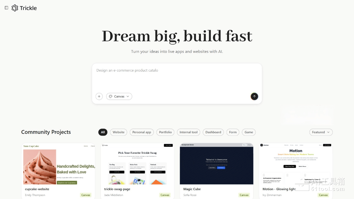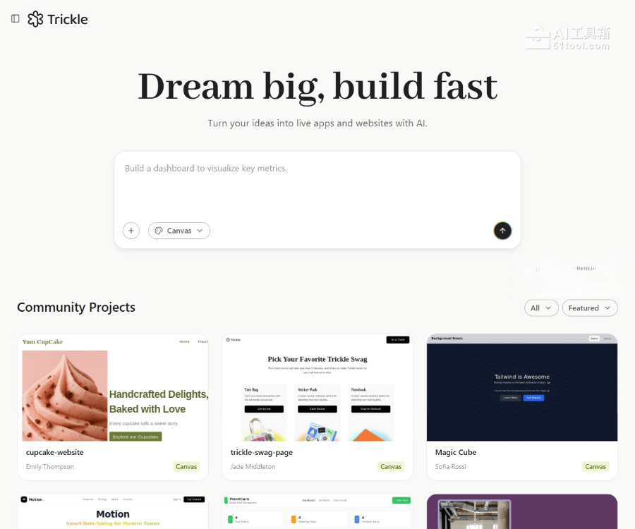 Trickle AI 是一站式无代码 AI 开发平台,支持将自然语言描述快速转化为功能强大的应用程序、网站和表单。Trickle 的核心是Magic Canvas,一个完全可视化的画布,支持与 AI 实时协作。Trickle AI 内置轻量级数据库、设计模板、自定义域名和网站托管功能,支持拖拽操作,用户能轻松实现创意。Trickle AI 提供社区项目参考,帮助用户获取灵感,快速构建原型并进行市场验证。Trickle AI为人开发者和企业用户,高效实现项目目标,节省时间和精力,快速将想法转化为实际应用。