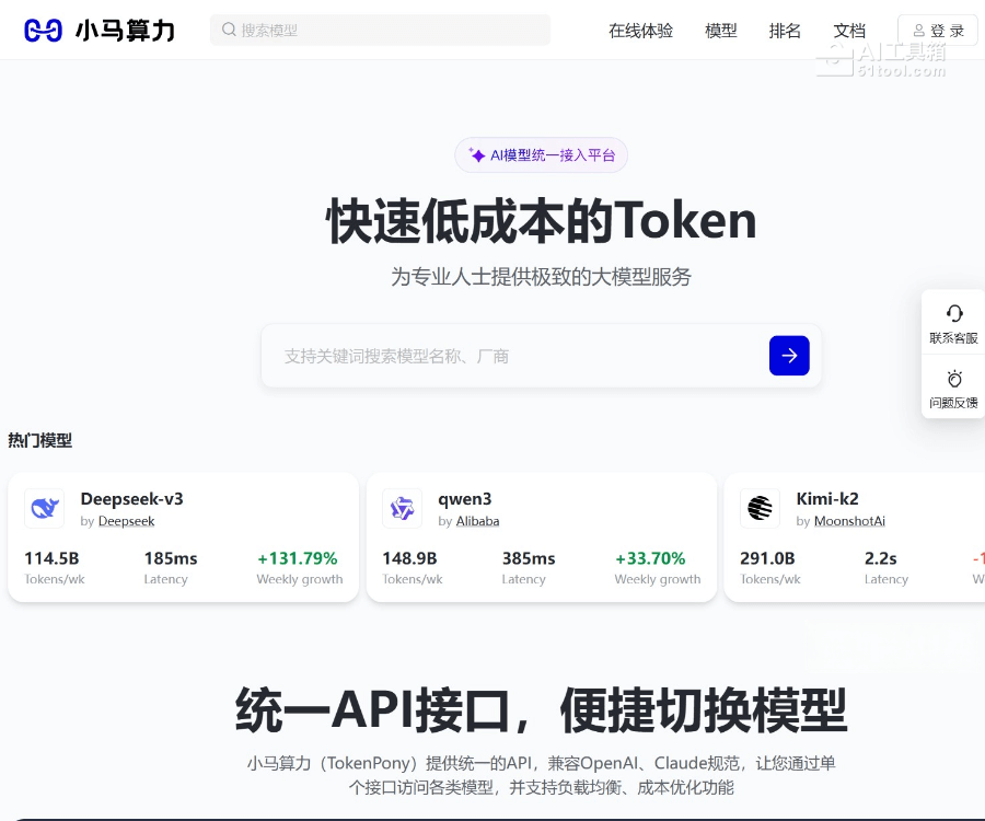 小马算力是为个人开发者和小型团队设计的 AI 模型API聚合平台,如同一位智能指挥家,将多种主流大模型(如 DeepSeek、Kimi、Qwen、GLM 等)集成在一个统一接口下,极大地简化了模型切换的繁琐流程。用户无需跨平台操作,可一键接入并自由调用不同模型,享受超长 1024K 上下文支持,轻松处理长文档和复杂任务。小马算力 提供零配置、免部署的一键调用 API,无需自建 GPU 服务器,大幅降低了开发门槛和成本。