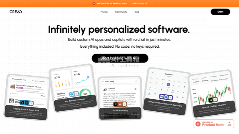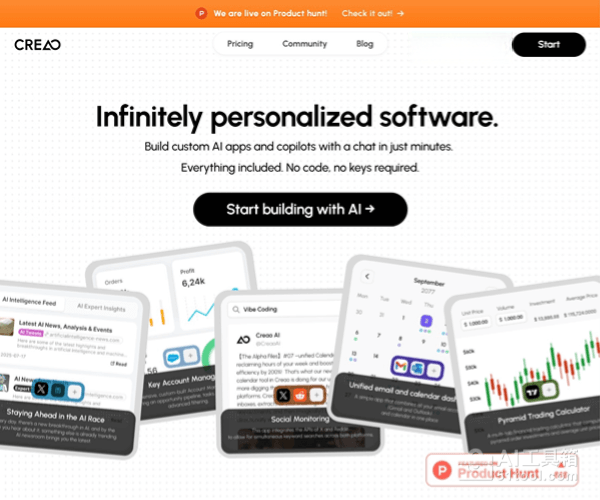 通过描述构建应用:用户只需描述需求,CREAO的AI会处理后端、数据库和托管等复杂基础设施,无需编码即可构建完整应用。
