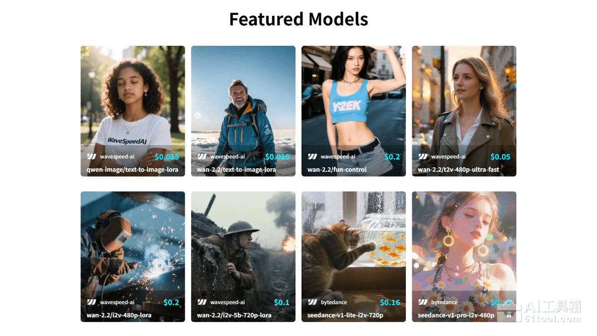 • 直接在 WaveSpeedAI 的 Web 界面中点击模型卡片开始创作。