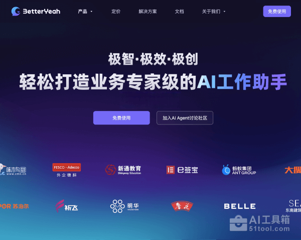 BetterYeah AI是一个企业级AI应用和助手开发构建平台,旨在简化AI Agent的开发流程,企业无需编写代码即可构建符合业务需求的智能助手。该平台提供一站式模型集成、知识库管理、数据库连接、自定义业务流程开发等功能,支持多模态交互,并通过API、SDK等集成方式灵活应用于企业系统。此外,它还提供专业的技术支持和定制化服务,帮助企业快速应用AI技术,提升业务效率。