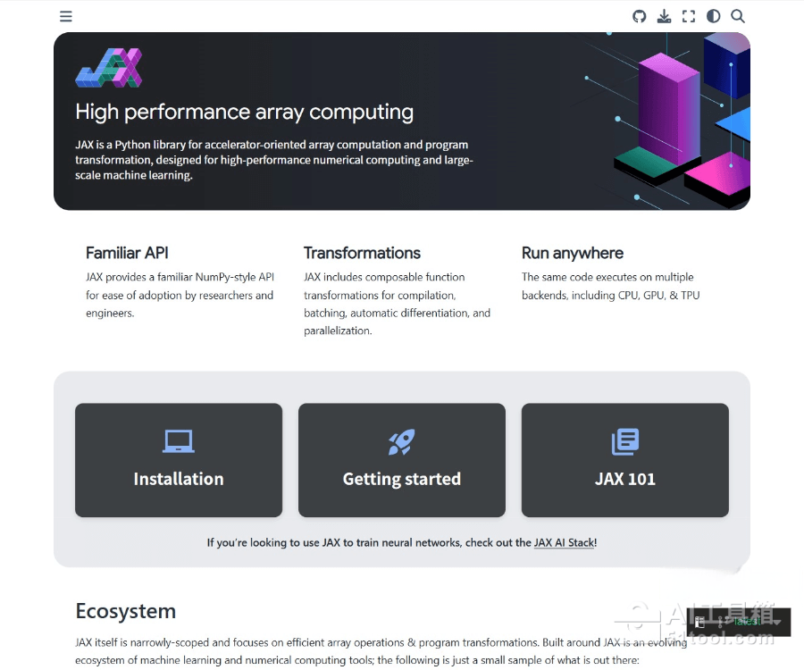 JAX是Google推出的高性能数值计算库,提供类似NumPy的API,支持GPU/TPU加速、自动微分、即时编译(JIT)和向量化等功能。JAX通过XLA(加速线性代数)编译器优化代码,显著提升运行效率,在大规模数据处理和机器学习中表现突出。JAX支持自动微分,能轻松计算函数梯度,适用于优化算法。JAX的异步执行模式和不可变数组设计使其在性能和可靠性上优于传统NumPy,是现代科学计算和机器学习研究中的重要工具。