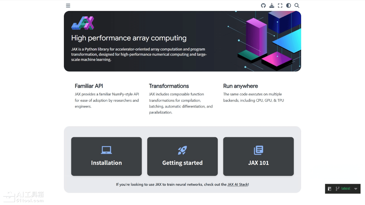 JAX是Google推出的高性能数值计算库,提供类似NumPy的API,支持GPU/TPU加速、自动微分、即时编译(JIT)和向量化等功能。JAX通过XLA(加速线性代数)编译器优化代码,显著提升运行效率,在大规模数据处理和机器学习中表现突出。JAX支持自动微分,能轻松计算函数梯度,适用于优化算法。JAX的异步执行模式和不可变数组设计使其在性能和可靠性上优于传统NumPy,是现代科学计算和机器学习研究中的重要工具。