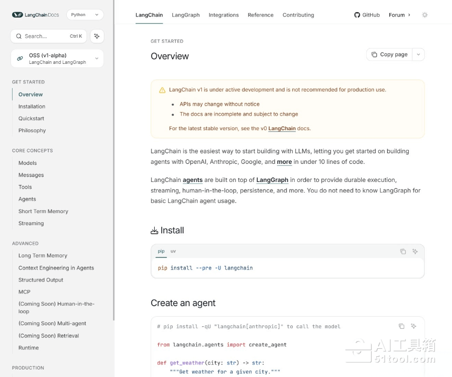 LangChain是用在开发由大型语言模型(LLMs)驱动的应用程序的框架。框架通过简化LLM应用的开发、生产化和部署过程,帮助开发者快速构建智能代理和应用。LangChain的核心功能包括快速上手的开发体验、强大的生产化支持以及灵活的部署选项。框架由多个开源库组成,如langchain-core、langchain和langgraph,提供从基础抽象到复杂应用编排的全面支持。LangChain集成LangSmith和LangGraph,分别用在应用的评估和生产级编排,帮助开发者从原型到生产无缝过渡。