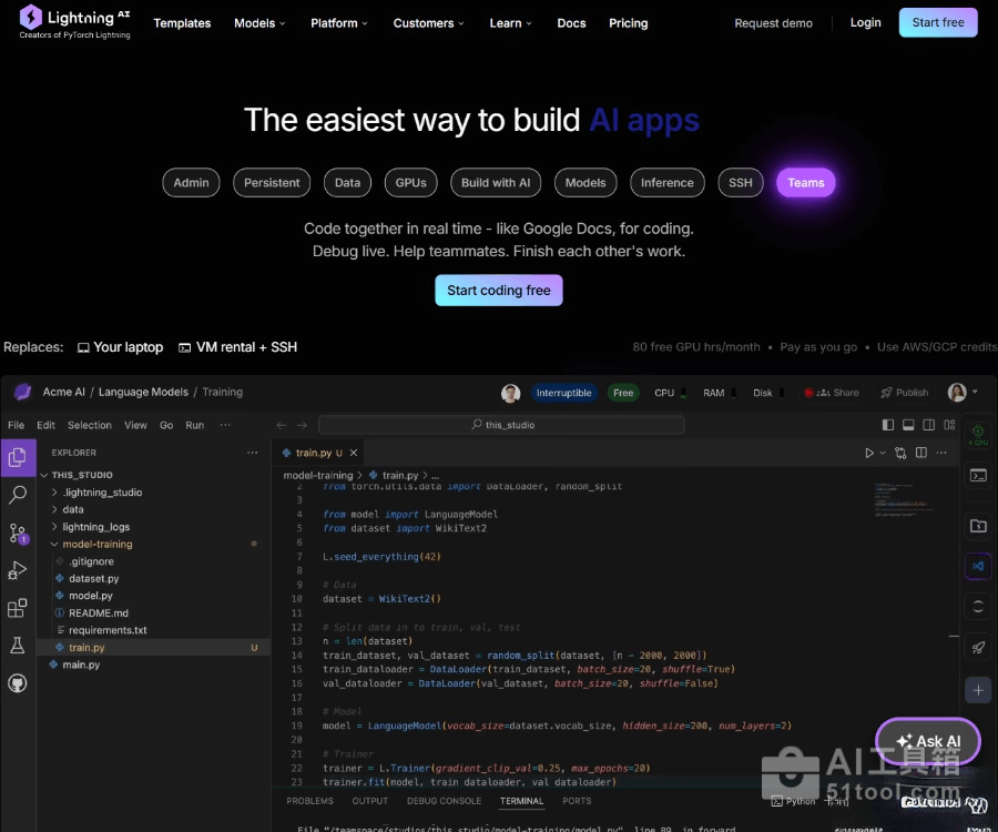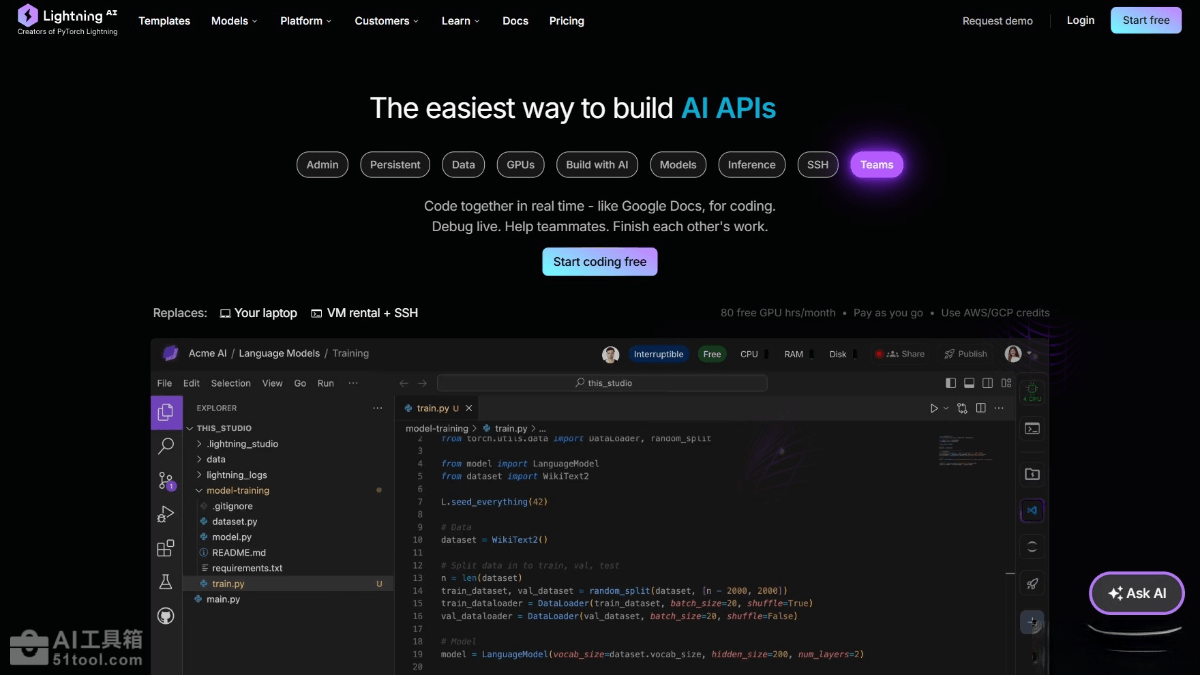 Lightning AI 是AI开发平台,能帮助开发者和企业快速训练、部署和开发人工智能产品。平台提供强大的工具和资源,包括预训练模型、高性能计算资源以及易于使用的界面,让开发者能专注于创新。初学者和经验丰富的开发者,都能通过 Lightning AI 快速启动 AI 项目,加速从概念到实际应用的进程。平台灵活的付费模式和强大的社区支持,成为推动 AI 开发和应用的理想选择。