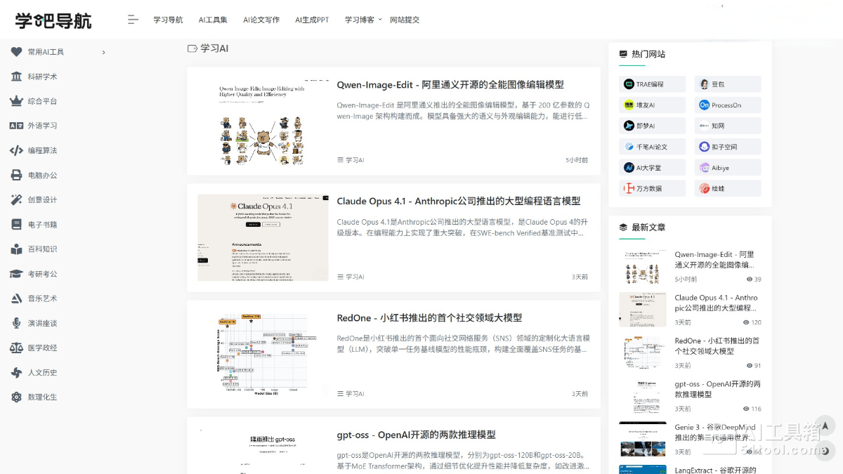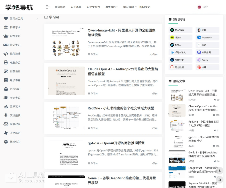 • 学习AI:涵盖前沿AI模型、工具及项目资源,助力探索人工智能技术与应用。