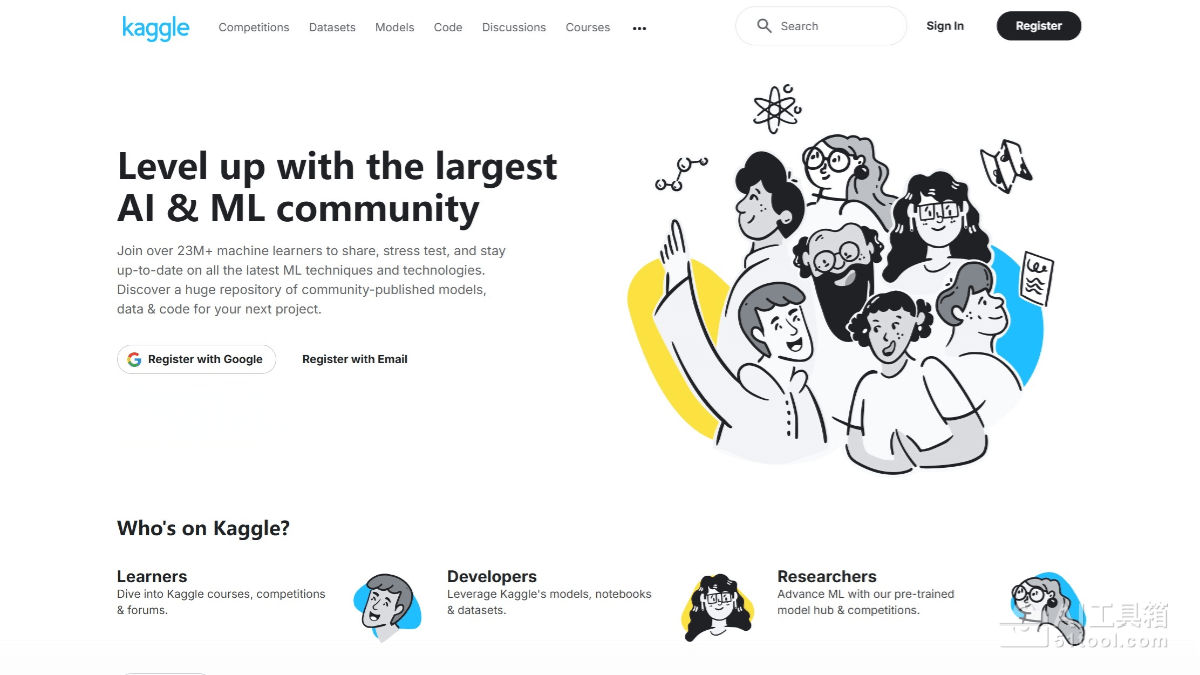 Kaggle 是全球知名的在线数据科学和机器学习社区平台,以举办数据科学竞赛而闻名,吸引了世界各地的数据科学家和机器学习爱好者参与。Kaggle 提供了丰富的数据集资源,用户可以免费下载和使用这些数据集进行研究和学习。Kaggle 的在线代码编辑器(Kernels)功能,支持用户在云端运行代码,无需本地配置环境,极大地便利了数据科学实践。用户可以通过论坛与其他数据科学家交流经验、分享知识。