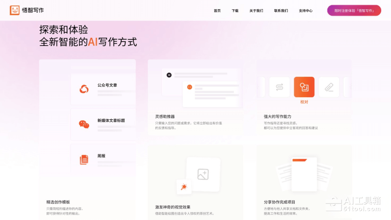 - 访问悟智写作的官网(wuz.com.cn),点击限时注册体验悟智写作进行登录/注册