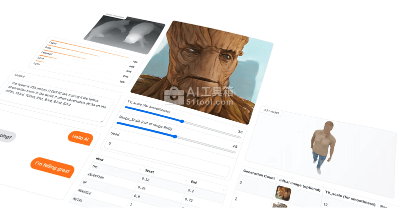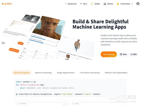 Gradio是一个开源的Python库,用于构建演示机器学习或数据科学,以及web应用程序。你可以使用Gradio基于自己的机器学习模型或数据科学工作流快速创建一个漂亮的用户界面,让用户可以尝试拖放他们自己的图像、输入文本、录制他们自己的声音,并通过浏览器与你的演示程序进行交互。Google、HuggingFace、亚马逊、Meta、思科、VMware等公司都在使用。