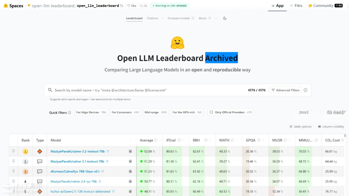 - 访问排行榜页面:访问 Open LLM Leaderboard 页面,查看当前的模型排名和性能数据。