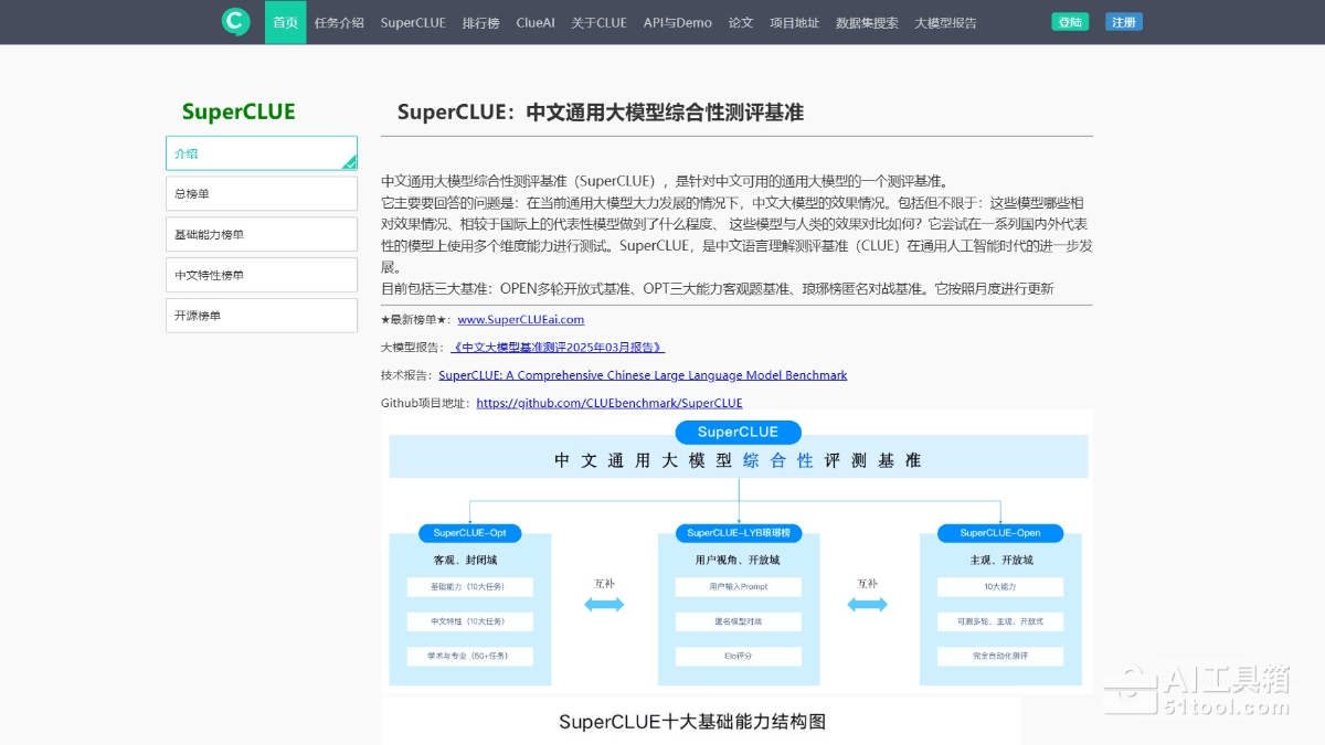 • 了解评测基准:访问 SuperCLUE 官方网站 或 GitHub 项目页面,阅读技术报告,熟悉评测维度和方法。