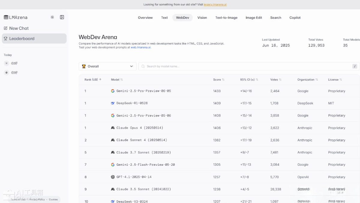 - 查看结果:投票后,平台会揭示两个AI模型的身份,可以看到你选择的模型在排行榜上的位置。