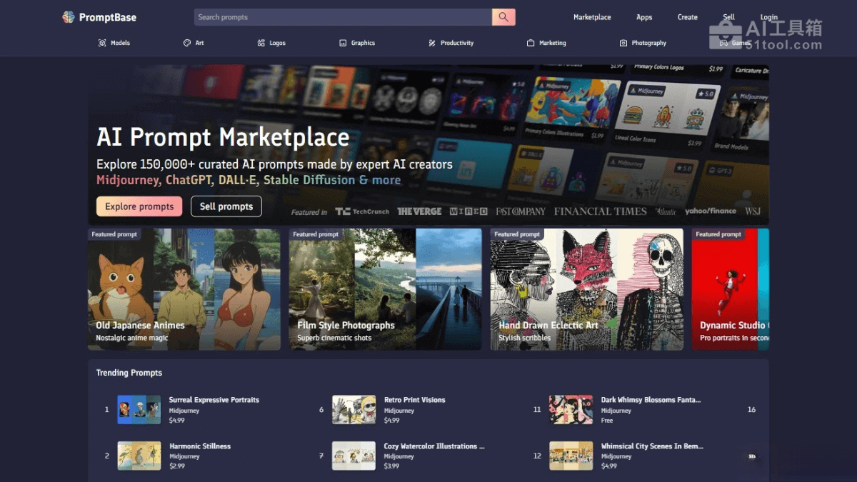- 探索和购买提示:用户支持浏览超过150,000个由专家AI创作者策划的AI提示,提示适用于不同的AI模型和应用场景。