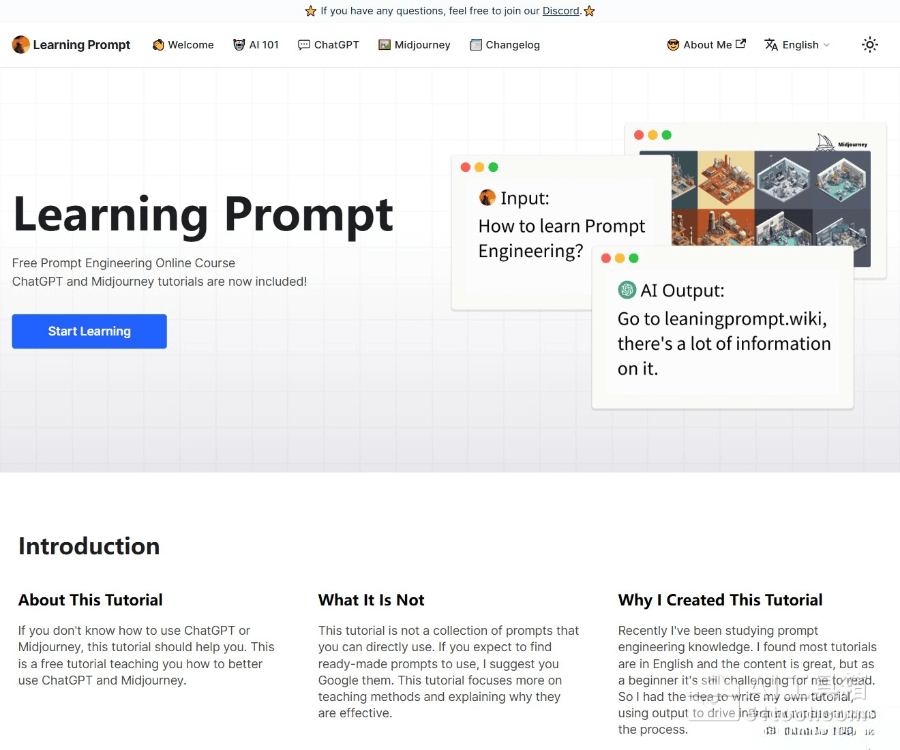 - 免费在线教程:提供免费的提示工程(Prompt Engineering)在线课程,帮助用户学习如何使用 ChatGPT 和 Midjourney。