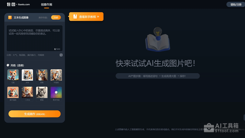 包图AI文生图是包图网推出的一站式图像、插画生成工具。一键解决图片生成及版权烦恼问题,让你实现想象照进现实,办公效率buff叠加!无需复杂的教程学习,傻瓜式文本输入,一键生成高质高清图片,你只需要提出指令,剩下的由AI来处理,操作简单易上手,办公小白必备利器。
